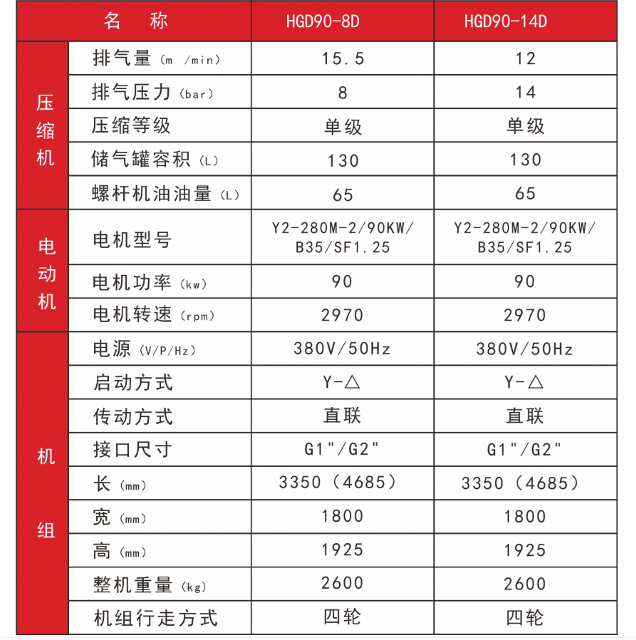 電驅(qū)-HGD中型移動空壓機系列 HGD110、HGD132 電移